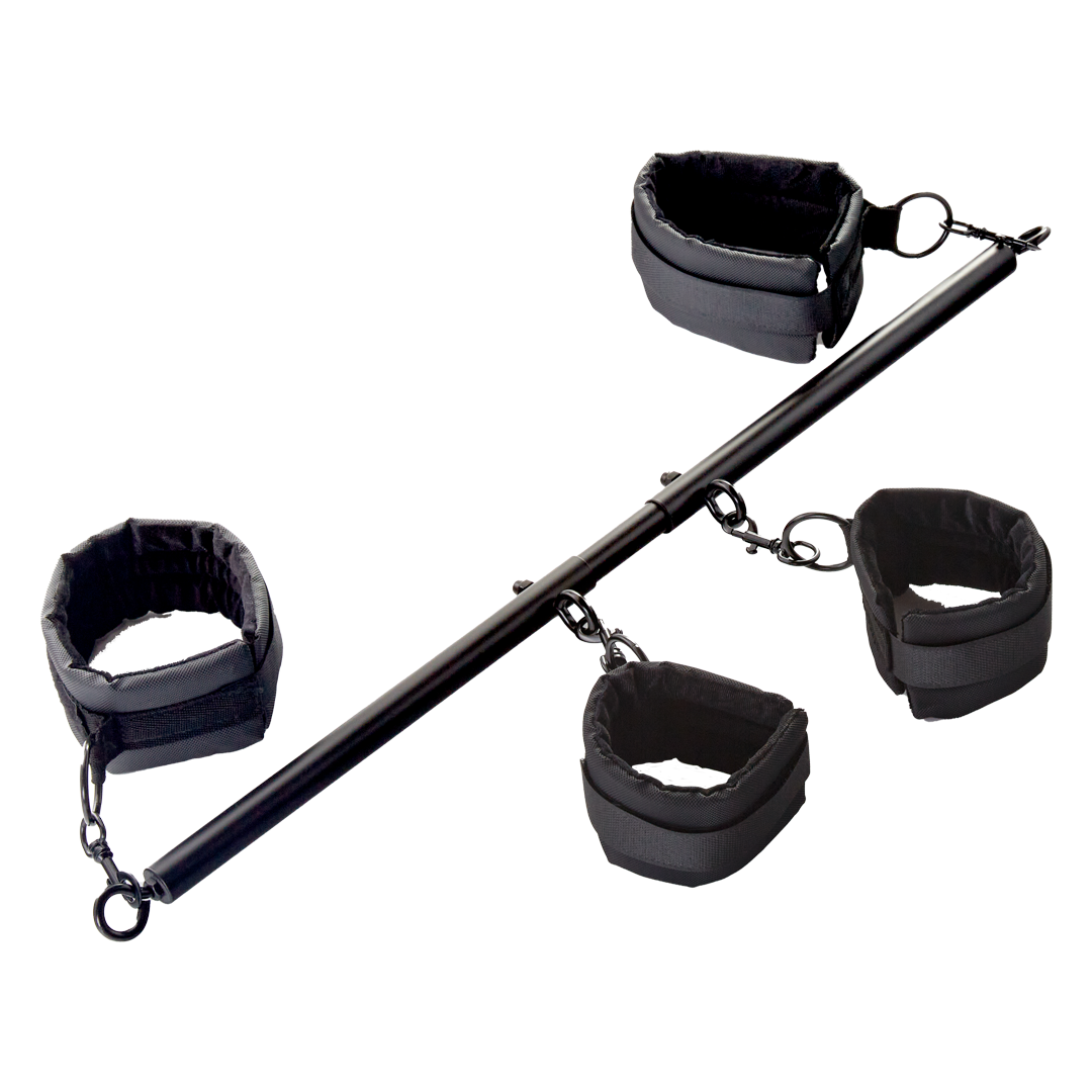 Perfect for spicy exploration, this spreader bar features four velvet-lined cuffs perfect for restraining wrists and ankles. The spreader bar itself is adjustable, extending out to put the restrained partner into sensual, compromising positions.