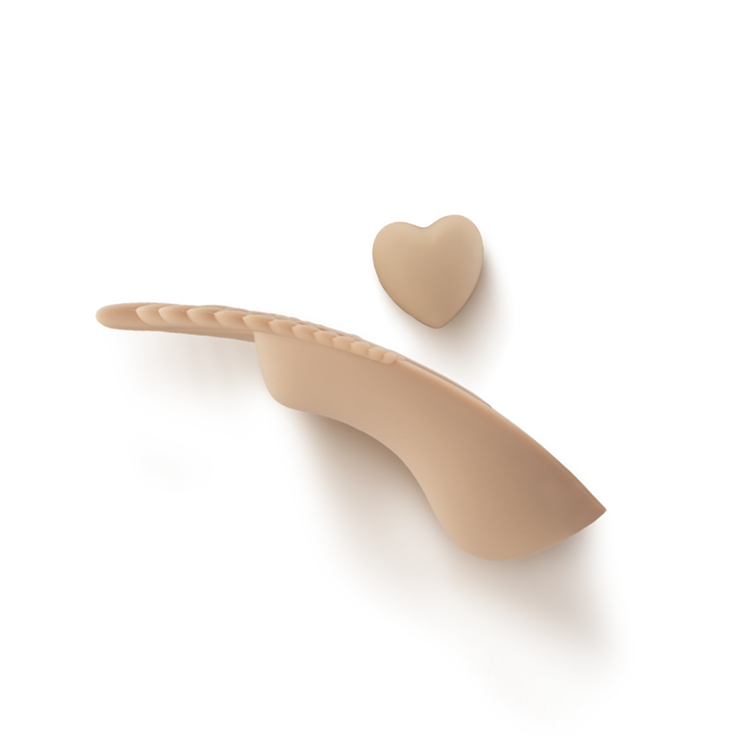 This premium wearable massager is perfect for discreet, on-the-go pleasure. Its heart-shaped magnet keeps it securely in place under your clothes, while its soft silicone curves gently stimulate your favorite spots.