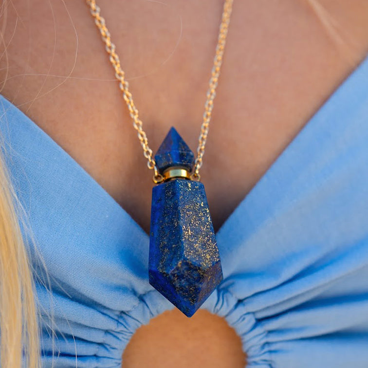 Lapis Lazuli pendant vessel filled with Organic Botanical Essential Oil Blend: